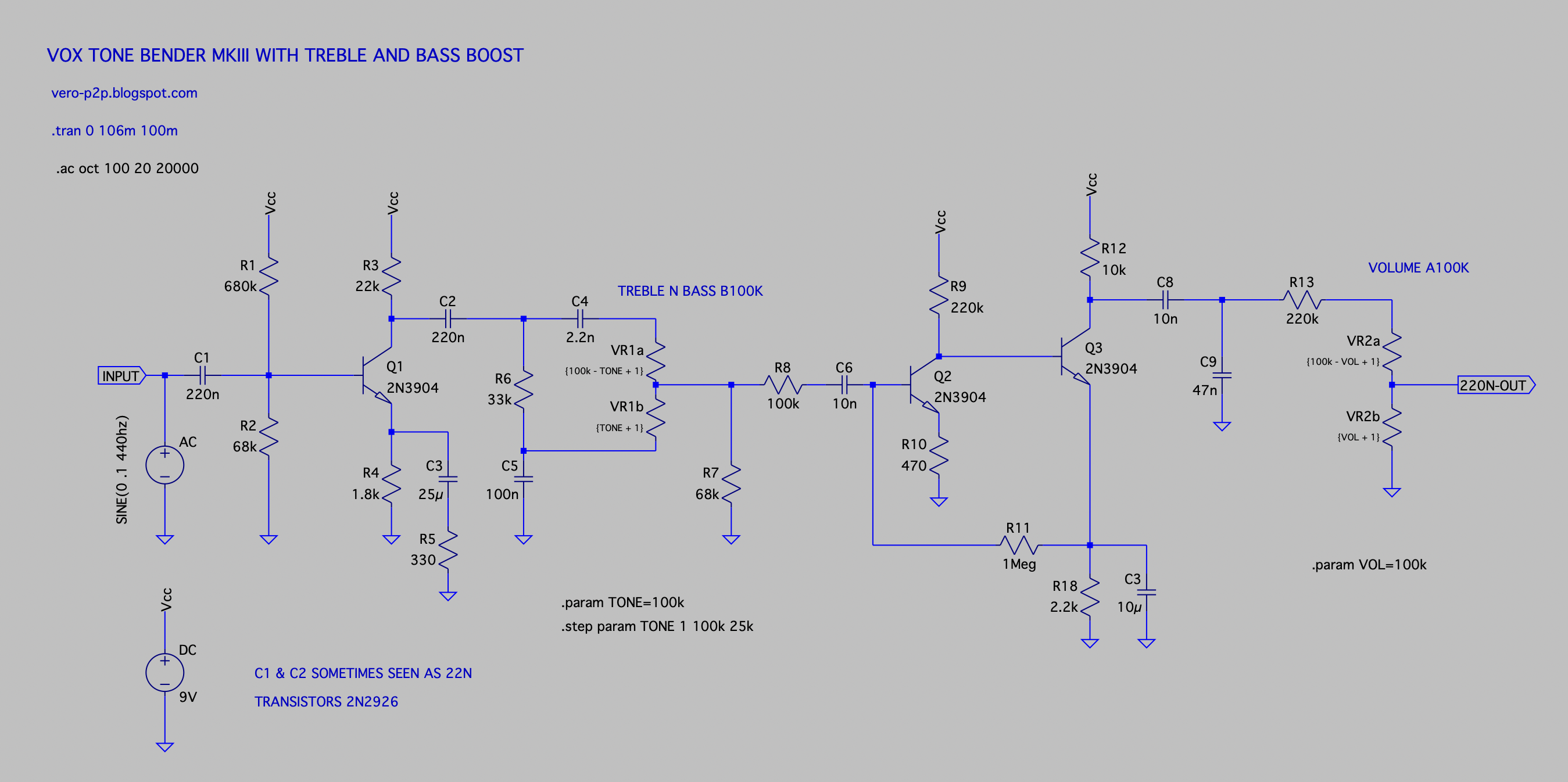 VOX TONE BENDER MKIII WITH TREBLE N BASS BOOST - VERO LAYOUT